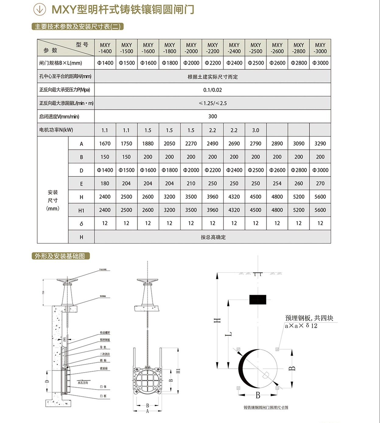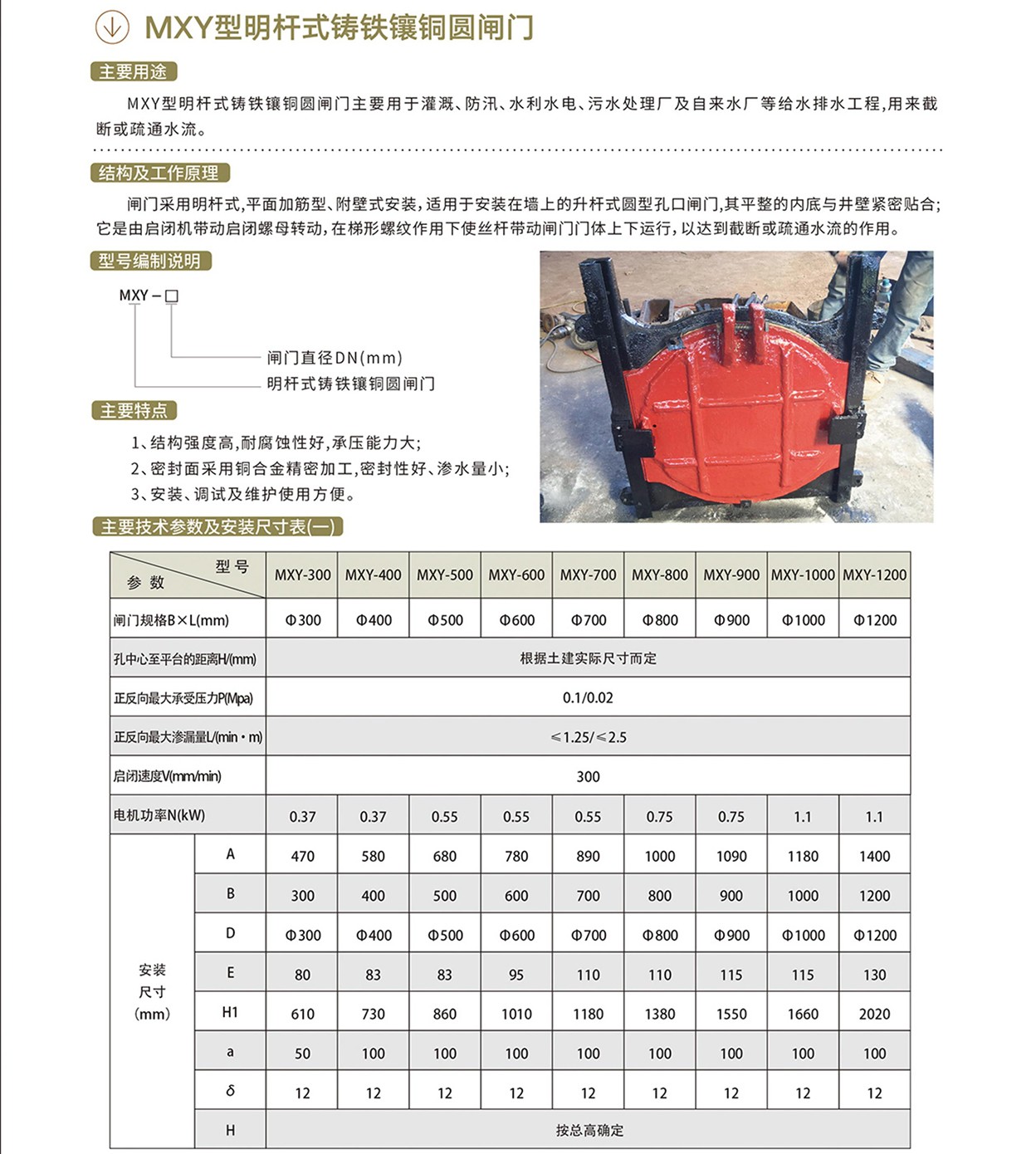 MXY型明杆式铸铁镶铜圆闸门